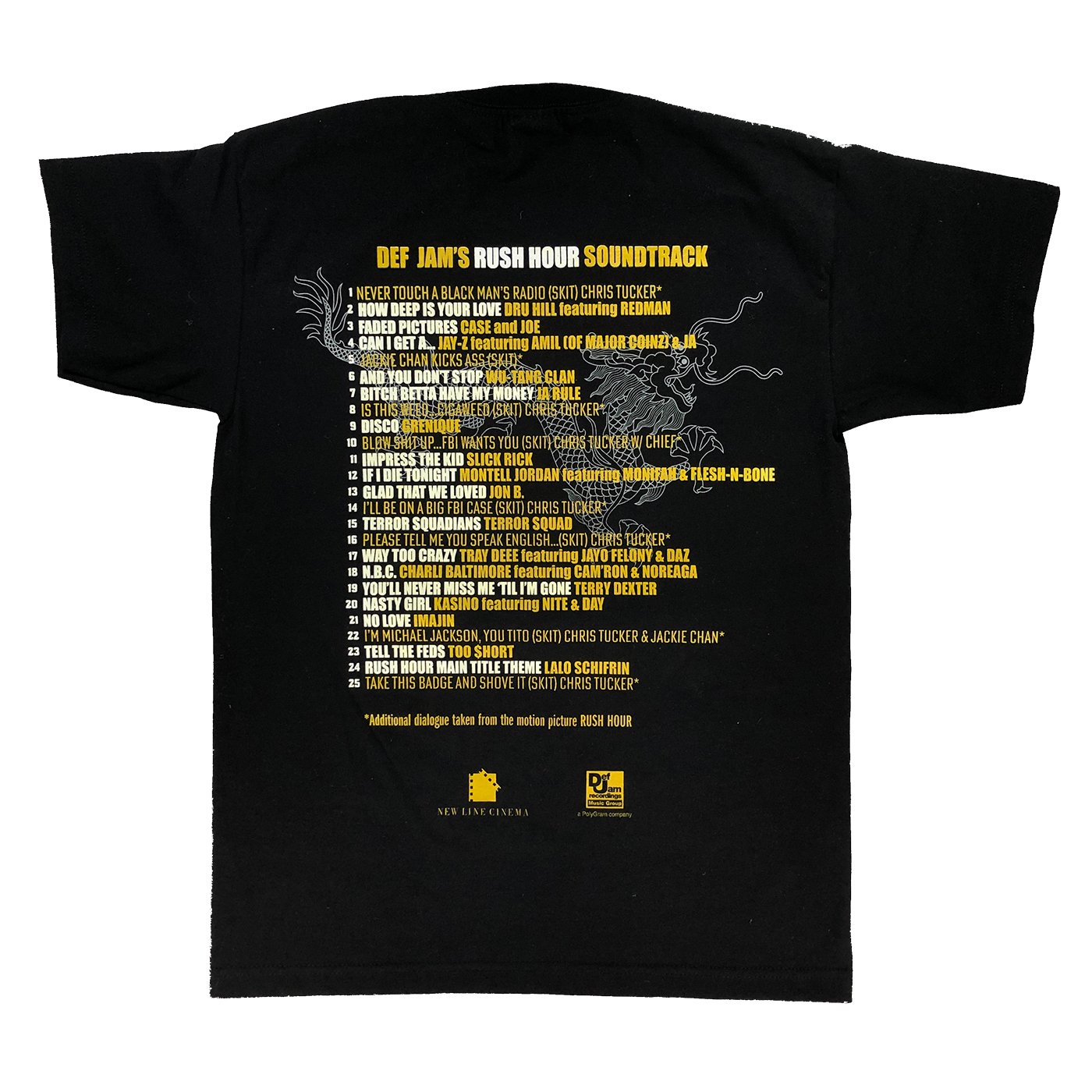 Rush Hour featuring Jackie Chan and Chris Tucker was released in 1998. The accompanying soundtrack featured the hits “How Deep is Your Love” by Dru Hill & Redman and “Can I Get A...” by Jay-Z, Amil (of Major Coinz) & Ja Rule. This shirt is reimagined as a promotional item with Sam Goody music store.